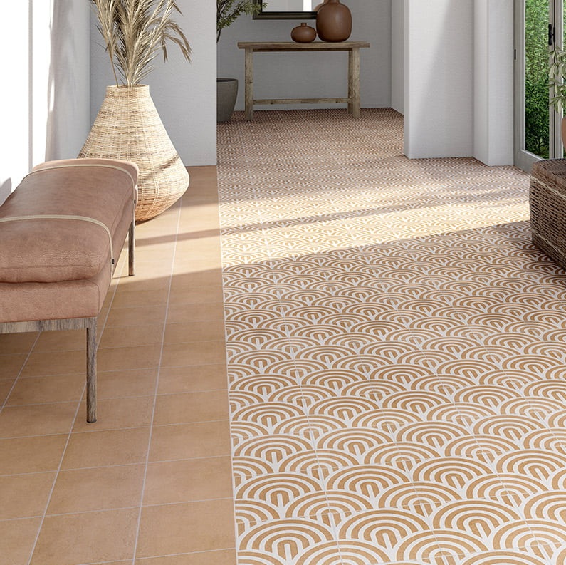 Een keramische full body patroontegel 20x20cm met een antislipwaarde van R10 Klasse2, geschikt voor zowel de huisinrichting als publieke ruimtes.
